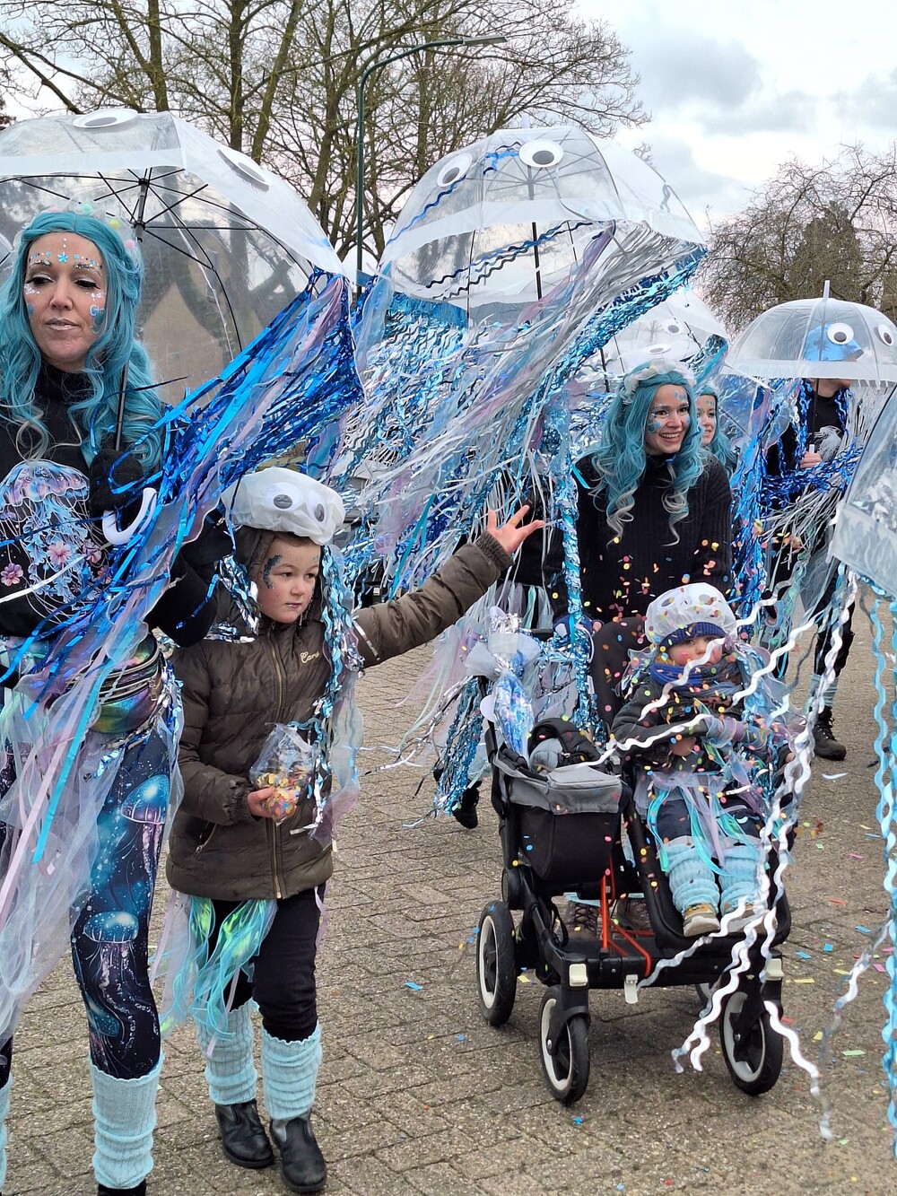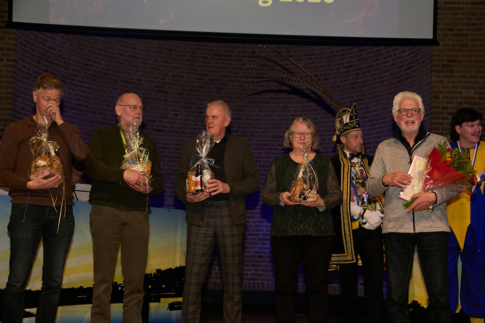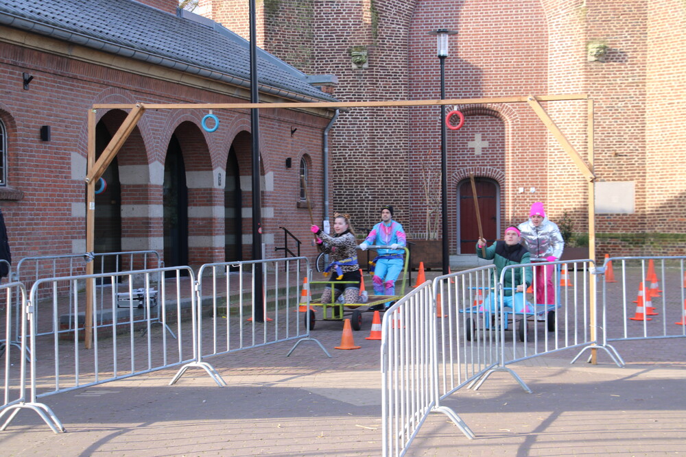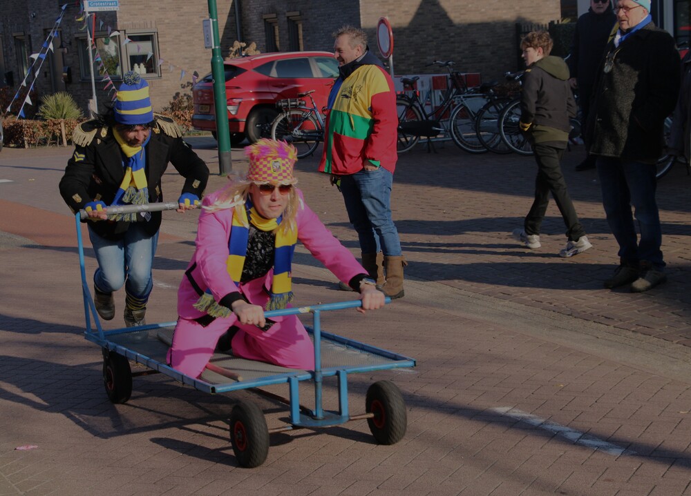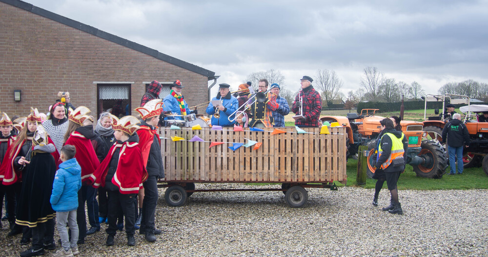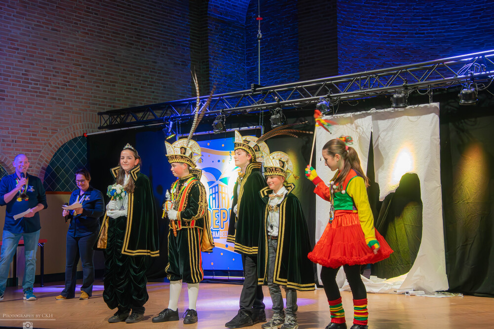 Bij de jeugd gaan voorop: Jeugdprins Raff, Jeugdprinses Lise, Jeugdvorst Tobias, Adjudant Ties en Nar Guusje.